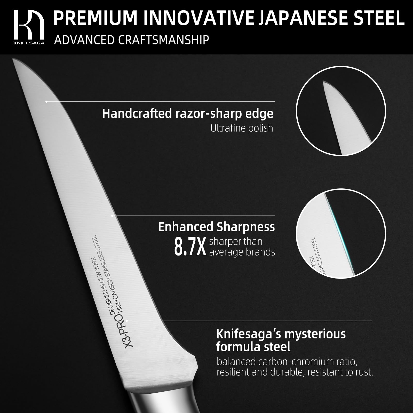 【Revolutionary NextGen Forged Steel】Indulge in the artistry of KnifeSaga's kitchen knife, showcasing an innovative steel formulation. With meticulous craftsmanship, we have achieved an exceptional 10° blade edge, ensuring effortless and precise cutting, transforming each slice into a seamless experience.