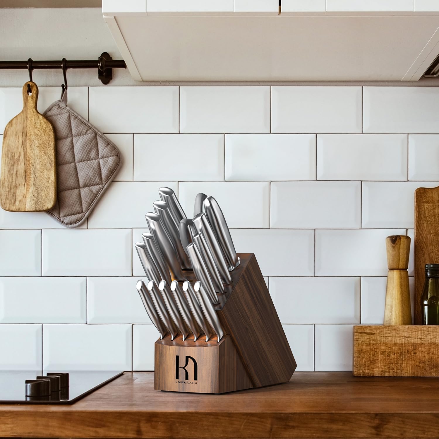 Knifesaga High Carbon Stainless Steel Kitchen Knife Block Sets X3 Pro-Knife Set 17 Pcs Silver